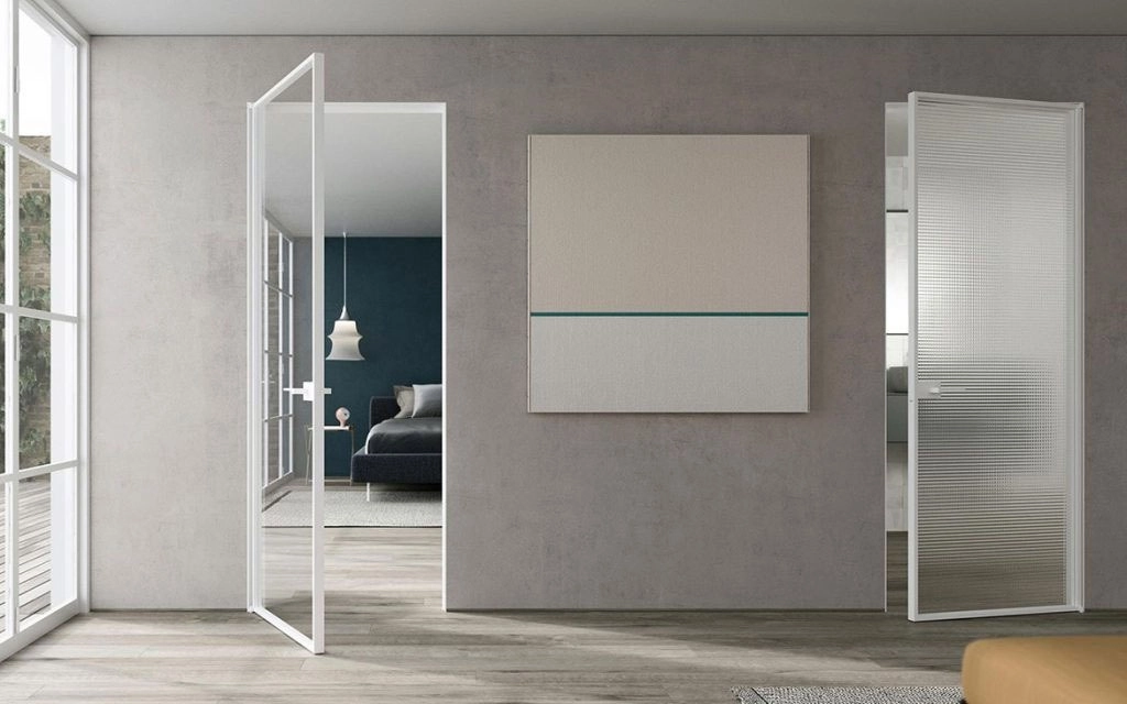 Sistemi quindi di arredo che spazionao dalla semplice porta con l'apertura a battente, alle porte scorrevoli di grandi dimensioni a tutta altezza, alle porte che invece spariscono perchè si integrano con la muratura o scompaiono all'interno della muratura stessa, alle pareti integrate da scaffalature attrezzabili