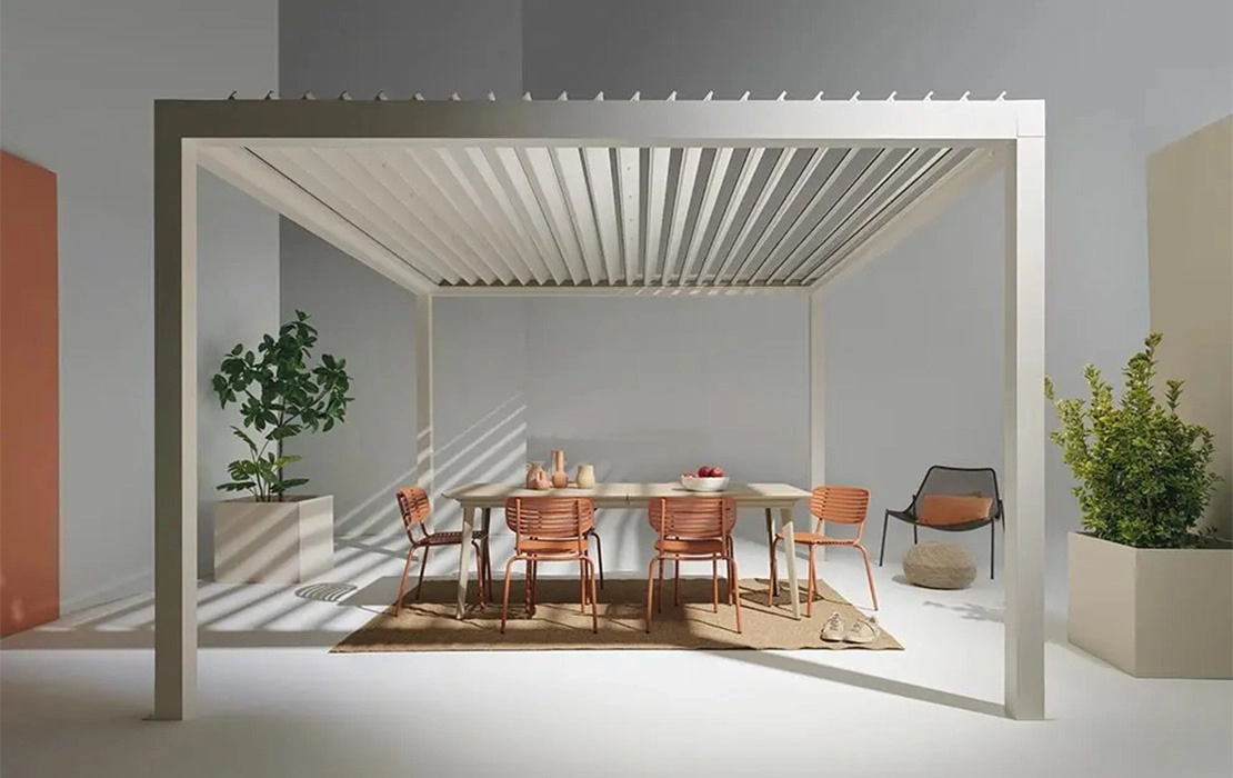 La pergola Movie è leggera nelle forme ma potente nelle prestazioni: il suo design pulito e contemporaneo si adatta perfettamente a contesti residenziali o urbani, trasformando anche il più piccolo spazio esterno in un’oasi di relax. Dotata di lame orientabili da 0° a 115°, Movie consente di modulare luce e ventilazione in base alle condizioni climatiche. Inoltre, grazie alla possibilità di aggiungere vetrate scorrevoli o schermature zip, garantisce comfort in ogni stagione.