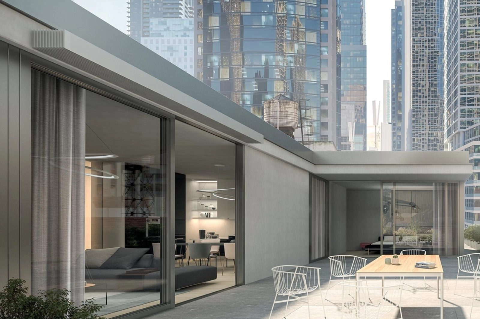 Questa tenda a bracci è progettata per ospitare il telo all’interno del cassonetto in alluminio per proteggerlo dagli agenti atmosferici e conferire un look minimale e pulito agli ambienti, dove viene installata.