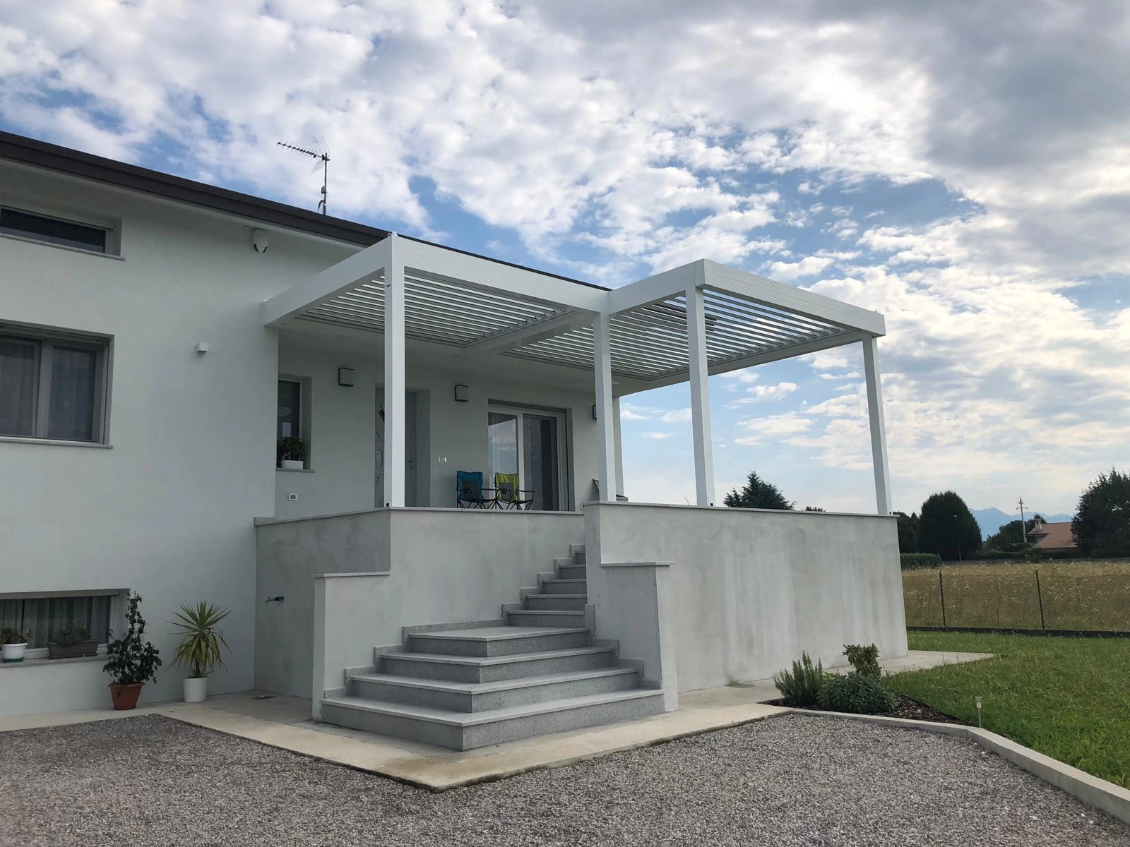 Abbiamo trasformato questo spazio esterno in un'area da vivere tutto l'anno con l'installazione della pergola bioclimatica Gibus Twist