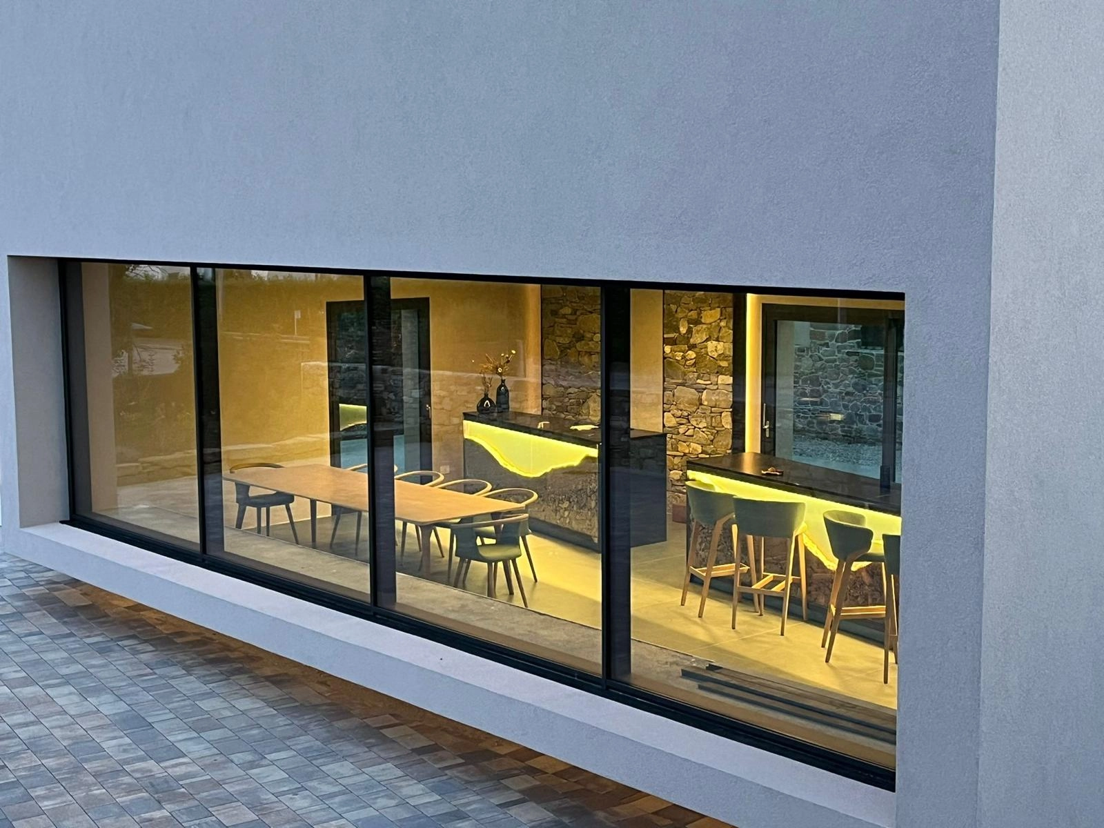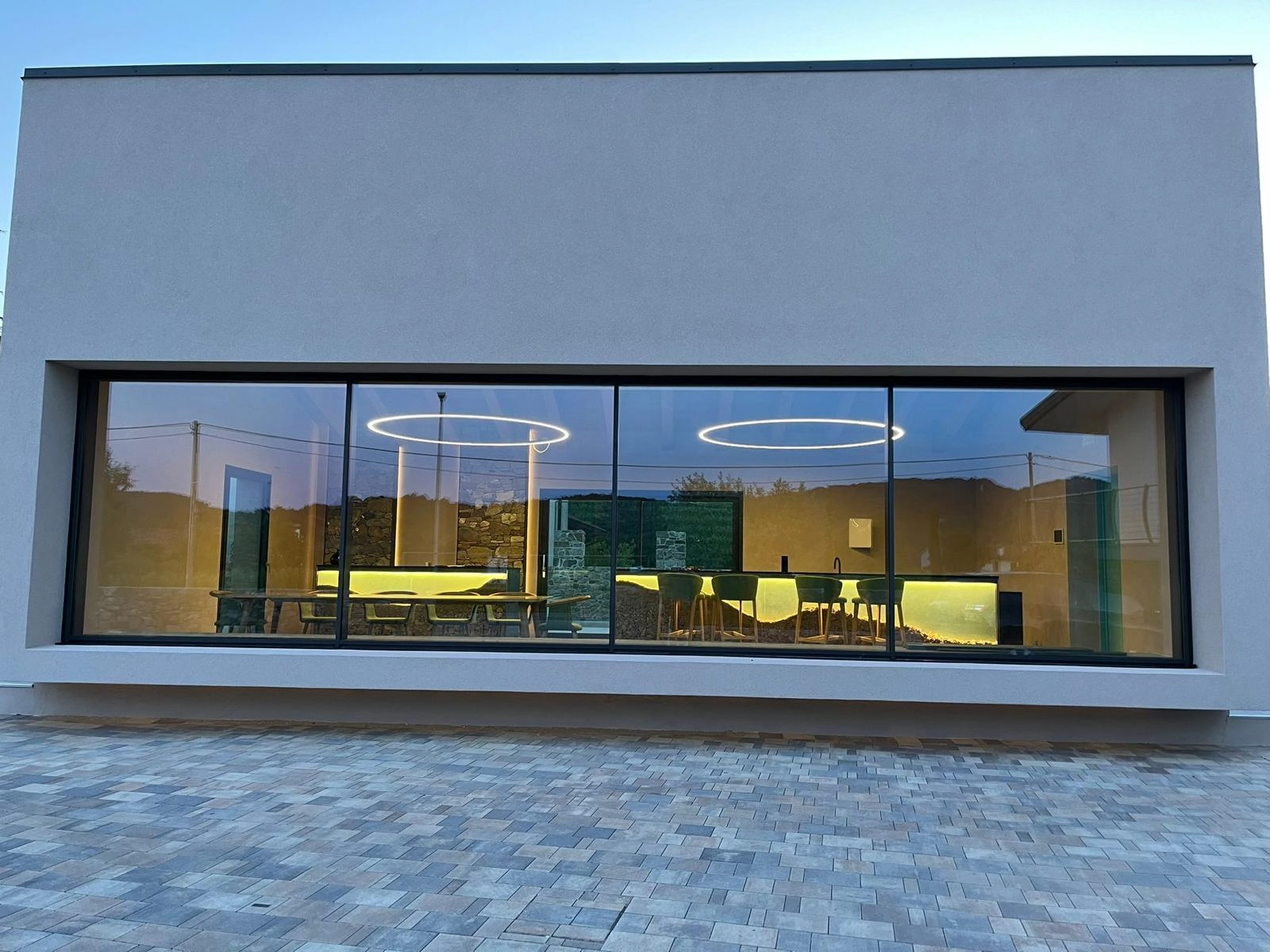 Per gli spazi di design di Vigne Lenuzza abbiamo scelto il sistema Metra Minimale: i suoi montanti ultrasottili da soli 35 mm annullano quasi del tutto la percezione del telaio. Il paesaggio delle vigne diventa così il vero protagonista dell'ambiente interno. Il risultato è un'atmosfera intima e accogliente, una fusione totale tra design e territorio, dove la tecnologia si mette al servizio della bellezza.